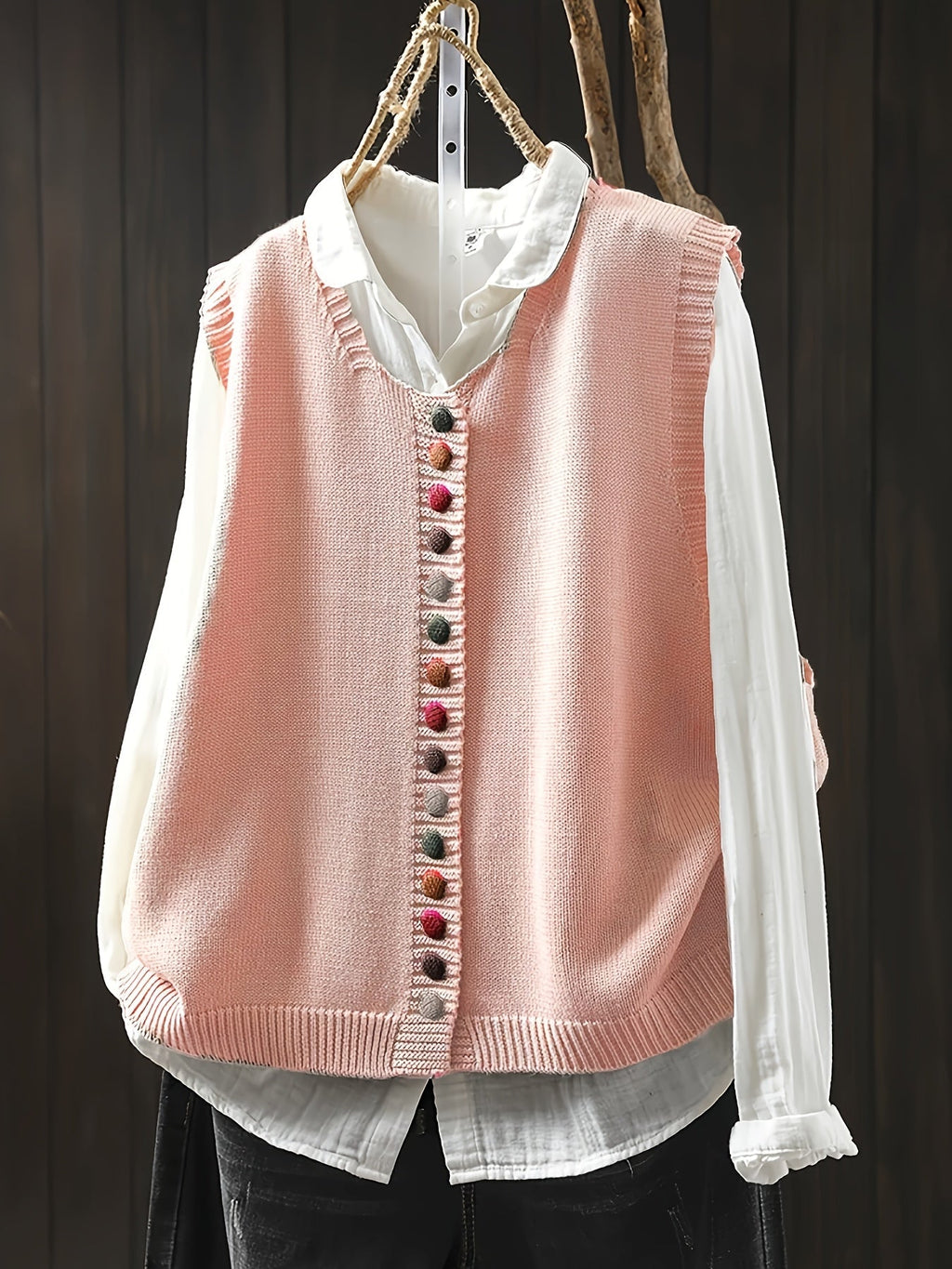 - Détails uniques – Les boutons décoratifs colorés apportent de l’originalité et subliment chaque tenue.